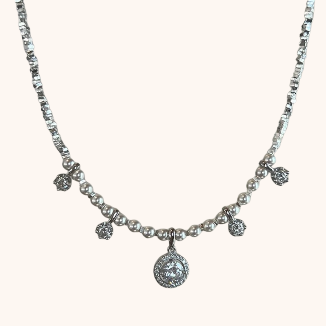 A combination of freshwater pearls and a zircon pendant for a refined, classic look.